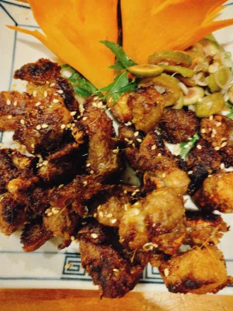 肝心のヤギの唐揚げがピンボケ…(でも酒のつまみには最高でした)