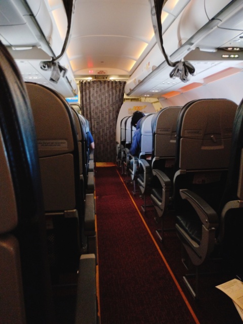 機内は空席が結構あって快適でした。(あの待ち行列は何だったのか?)