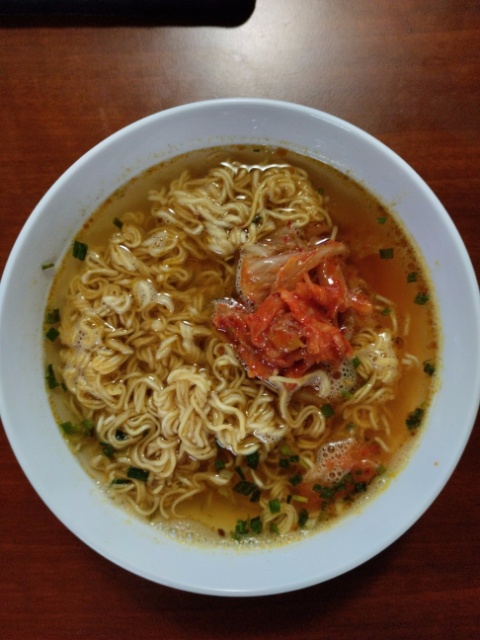 もともと酸っぱ辛い味なので、キムチ入れても違和感ないです。