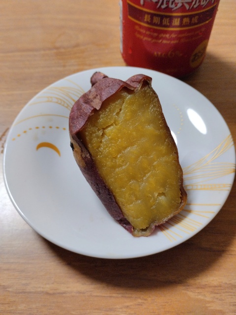 イオンで買ってきた焼き芋 (夢庵でもらったお皿がいい感じ)