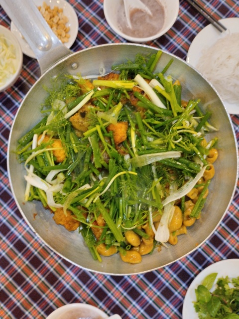メインの「チャーカー」という揚げた川魚をぶつ切りにした料理です。