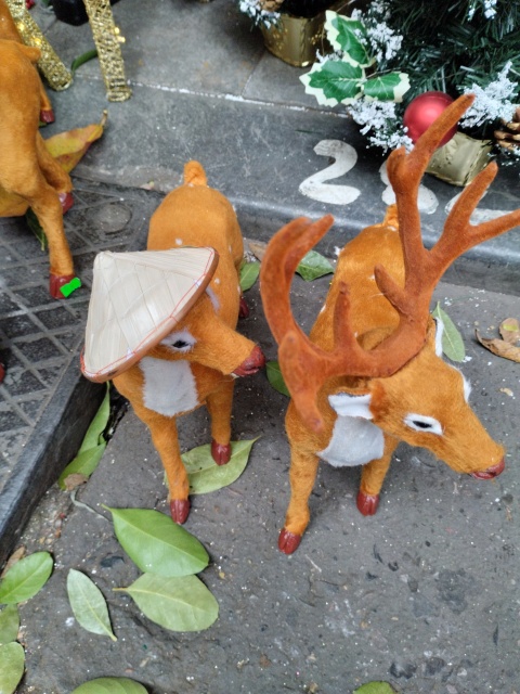 ベトナムではトナカイもノンラー(簑笠)かぶってます。