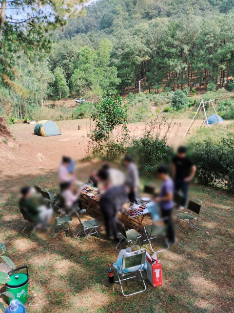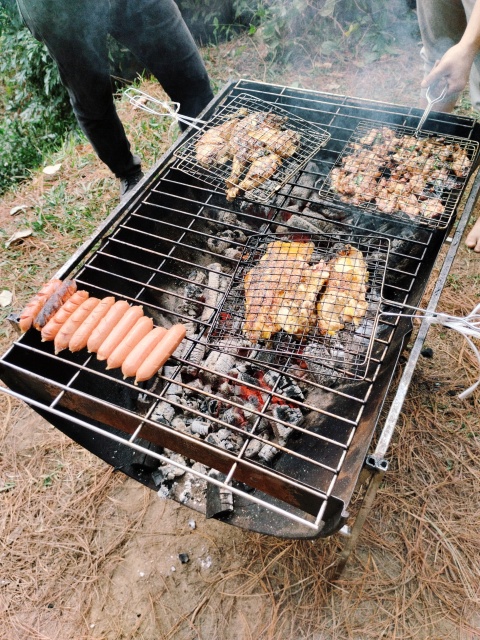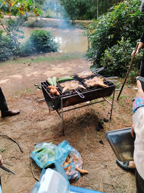 ここは他のグループの場所ですが、イノシシは火が通るのに時間がかかるため、キャンプ場スタッフが彼らの到着前に焼き始めてたようです。