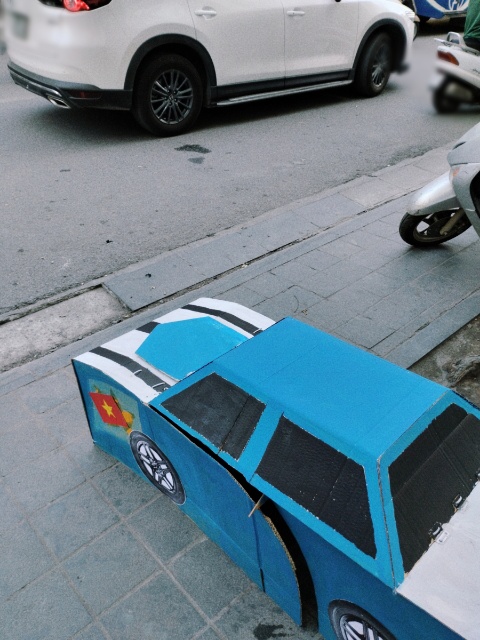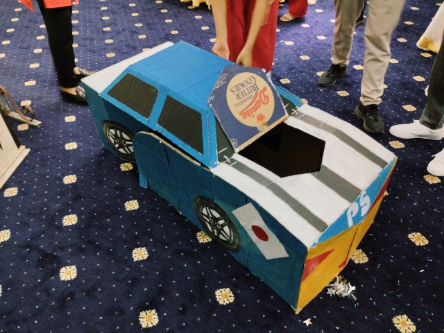 ダンボール製の車をかぶって歩いてました。(結局これが1位を獲得)