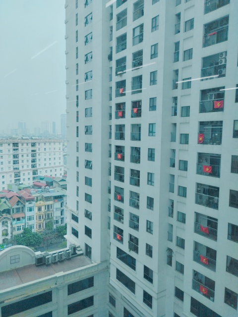 ベトナムでは祝日にはこうやって、一般の家庭でも普通に国旗を掲げます。