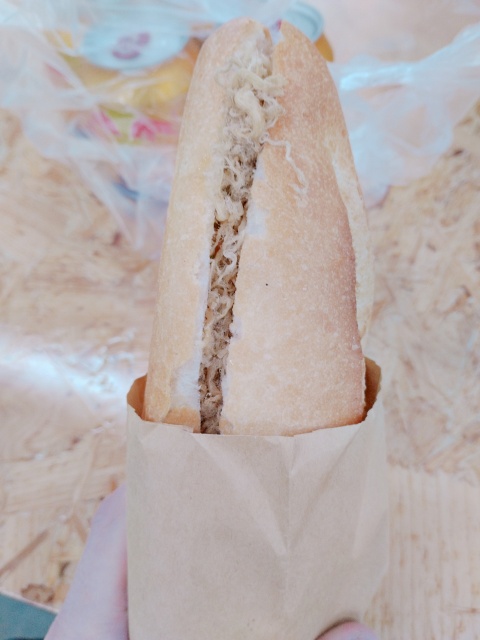 お昼はバインミーを自席で食べました。