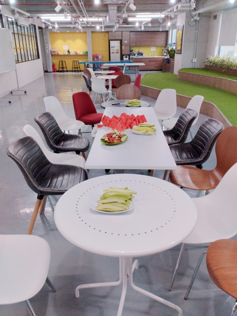午前中、月例の長い会議を終え、いつものように同僚の日本人とランチしてます。