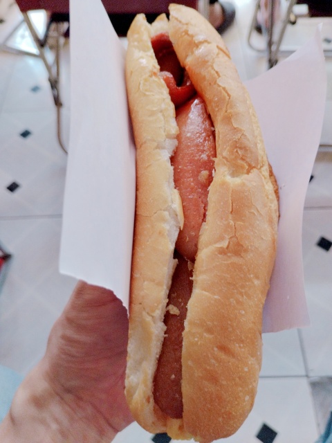 お昼に日本人の同僚とバインミーを頬張っているところです。