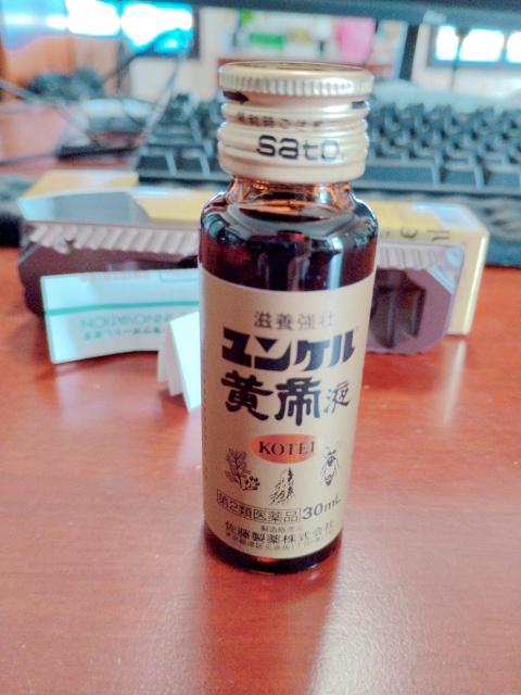 熱で体の節々が痛むので、日本から持参した最後のユンケルを開けます。