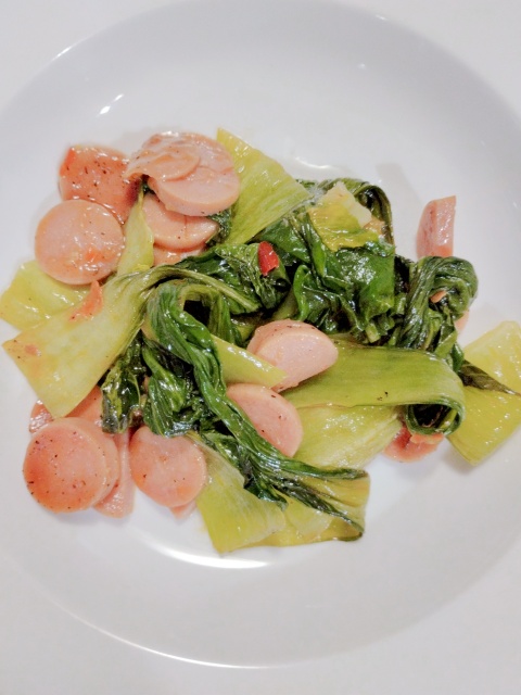チンゲンサイを炒めただけですが、サテトムを入れるとめちゃめちゃおいしい。