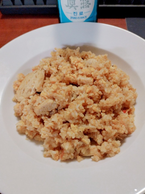 昨日と同じサテトムを使った炒飯ですが、鶏のささみに変えてみました。
