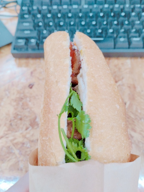 仕事の前にバインミーを頬張る。