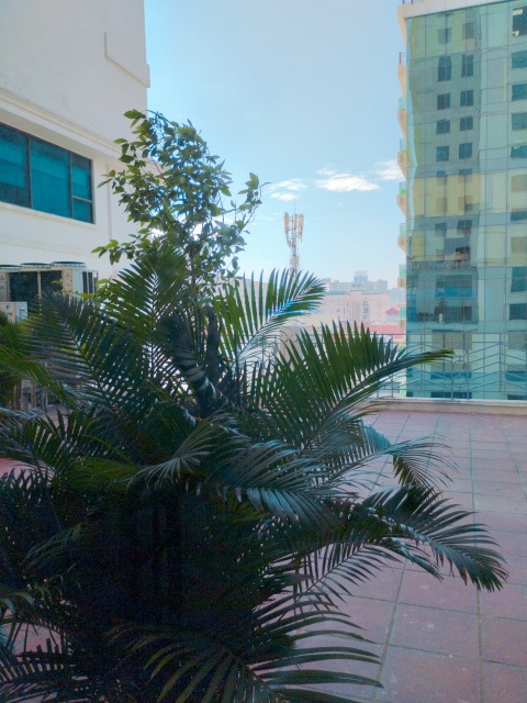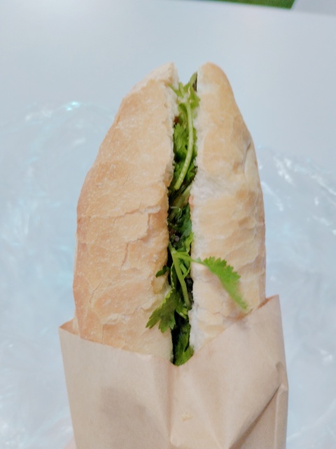 クーラーが効いた休憩スペースでバインミーを頬張ってます。(パクチーおいしい)