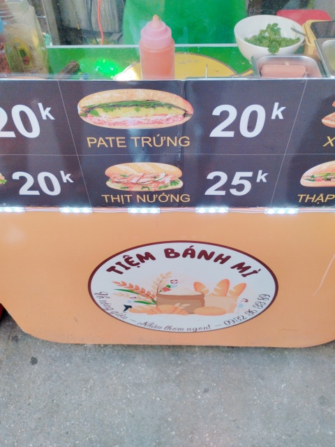 今は屋台となった推しのバインミー屋ですが、店舗時代に壁にかかってたメニュー表が見えます。