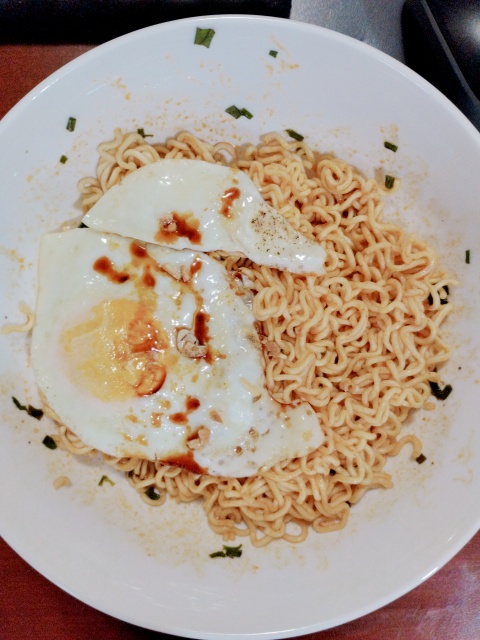 夕飯はインスタント焼きそば。(見た目いまいちですが味はうまい)