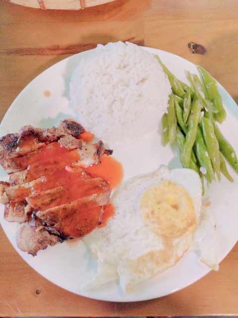 最近僕はブンチャーを食べると必ず腹を下すことに気付いたので、今日はポークライスにしました。(約270円)