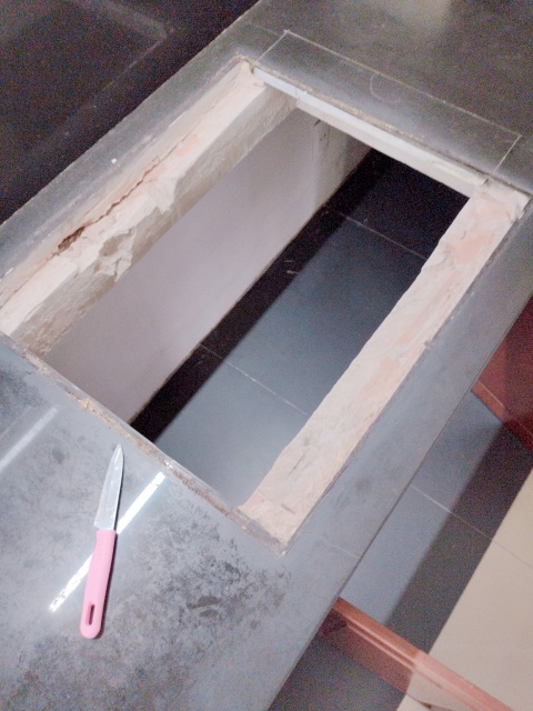 穴を塞ぐための板を乗せて、その上に臨時のコンロ設置してくれました。