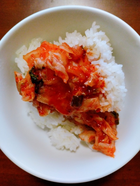 アパートに着いてキムチごはんを食べてるところです。(さすがに腹減った)