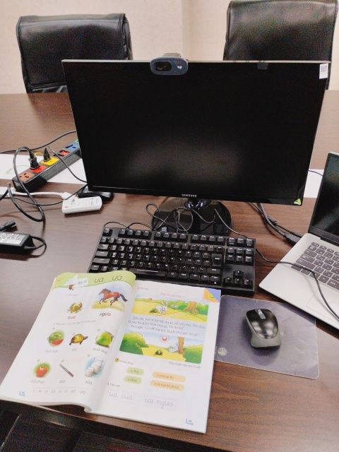 アパートのWiFiが弱いため、会社でベトナム語のオンライン・レッスンを受けるためです。
