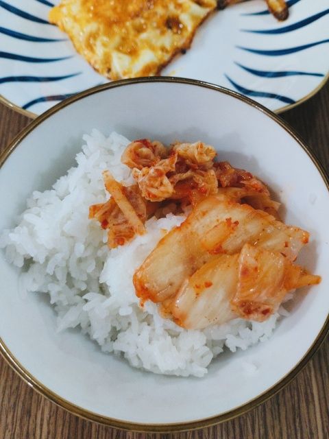 アパートに帰宅後、キムチご飯を食べて休憩中。