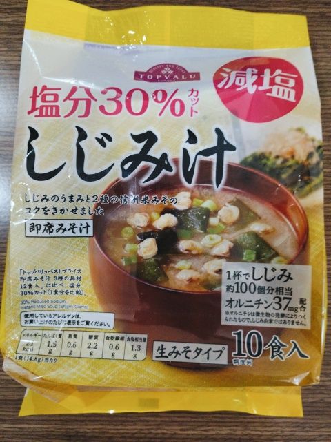 トップバリューのしじみ味噌汁は初めて買いましたが、具のしじみが大きめで良いですね。