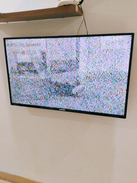 アパートに戻ると大家とスタッフがTVの修理中でした。