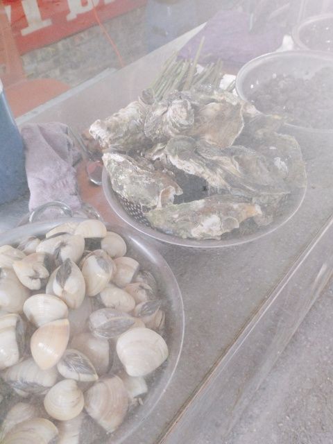 さて遅めのランチへ。(ハマグリや牡蠣は眺めてるだけ、今度食べたい)