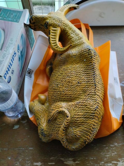 ウシくん、こんな所に移動してた。(陶器の車止めで、以前は駐車場にあった)