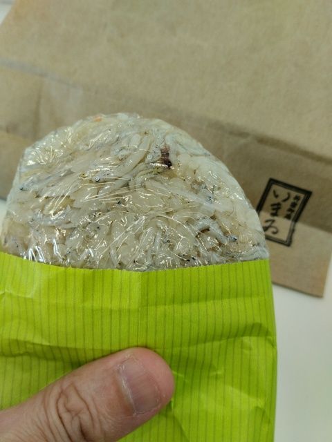 その証拠に昼前に腹が減って、昨晩「いまゐ」で手土産に貰ったおにぎりを頬張ってます。
