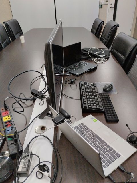 右のPCで仕事をしつつ、左の個人用PCでいつものオンライン家庭教師をやってました。