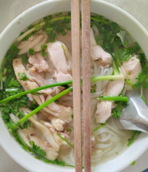 たまたま休日出勤してた別チームの若者からランチに誘われ、チキン・フォーを食べてるところです。