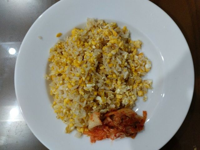 アパートに帰宅後、チャーハンを作りました。(具は卵だけ)