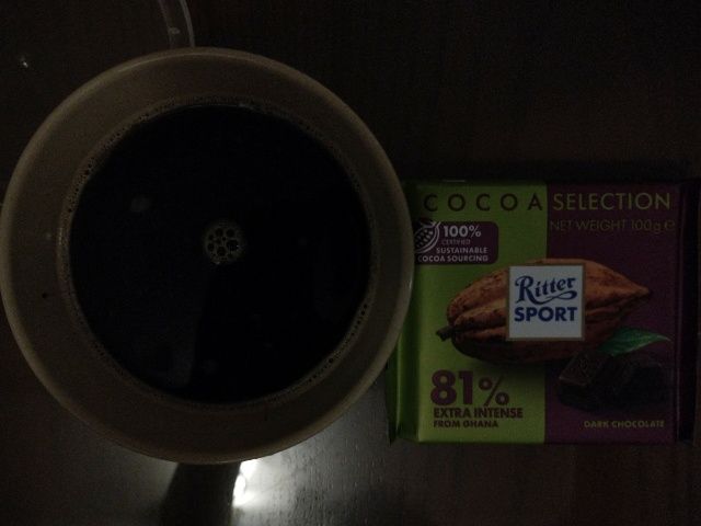 カカオ多め(81%)のチョコとコーヒーで残業します。