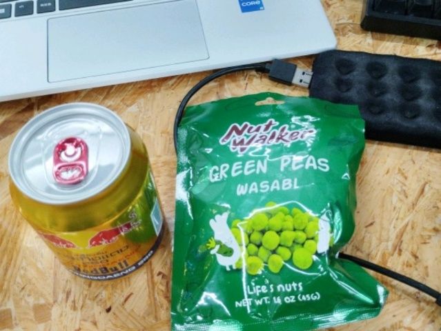 朝飯のグリーンピースは辛いと思ったら、「WASABI」と書いてました…