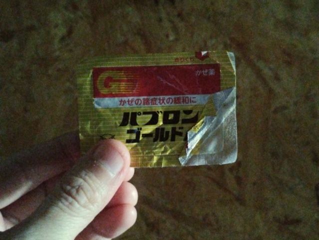 喉の痛みを感じたので早めのパブロン。(バッグの奥で潰れてました…)