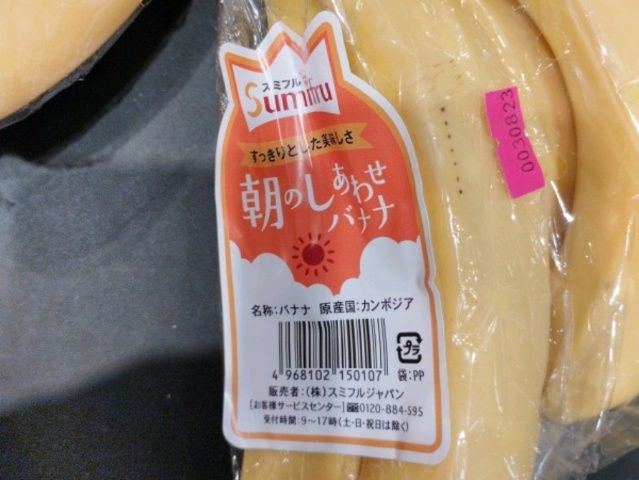 アイキャッチ画像のバナナはベトナム産だったので、買おうかと思ったけど、やっぱり70円ほど安いカンボジア産にしました。(カンボジアびいきでもあるので)